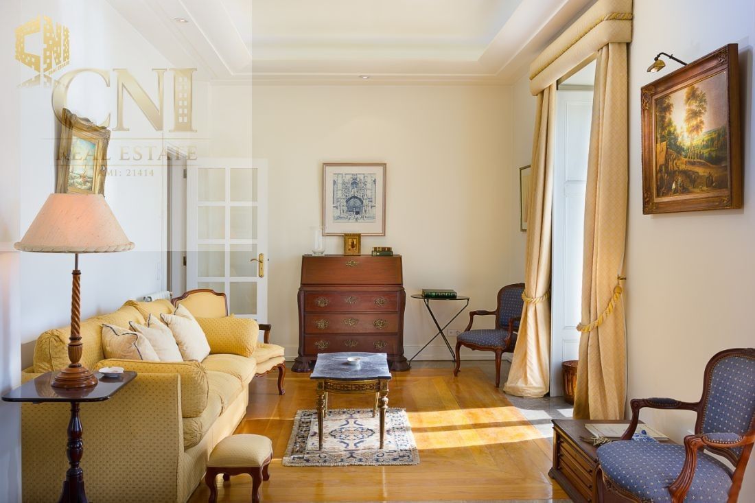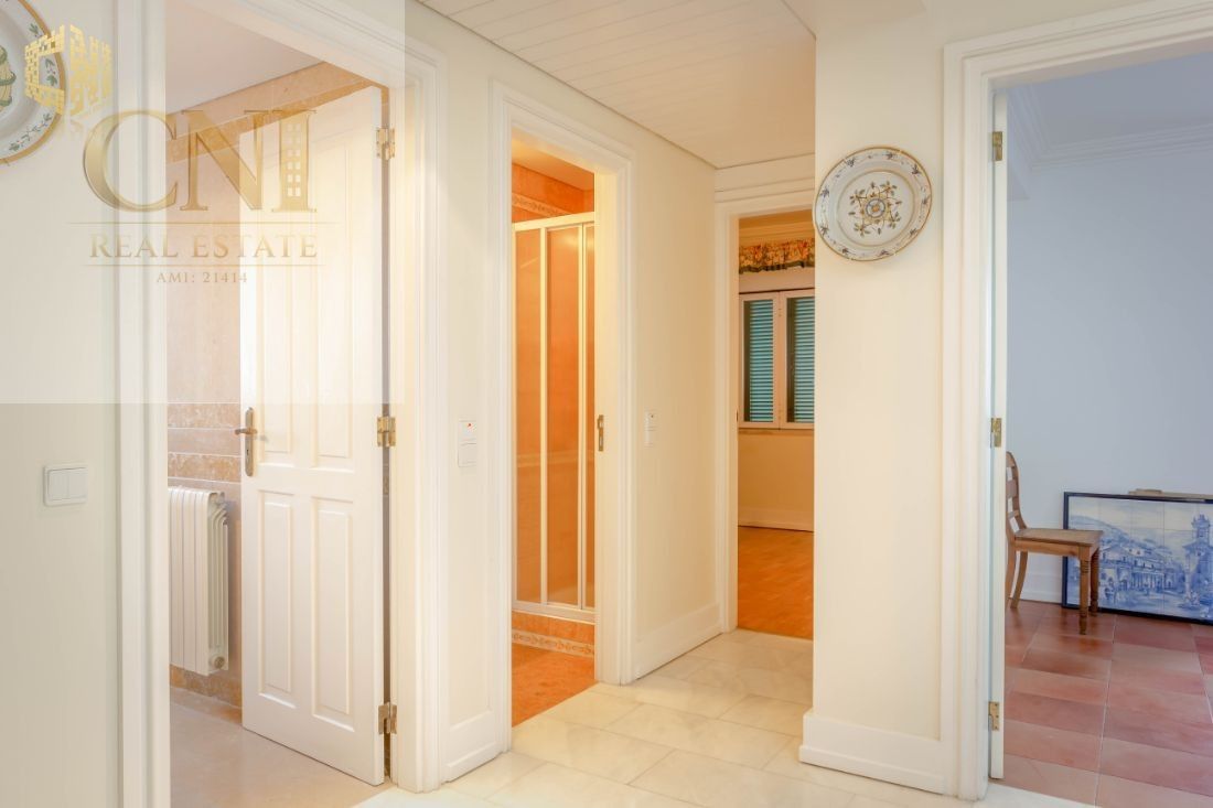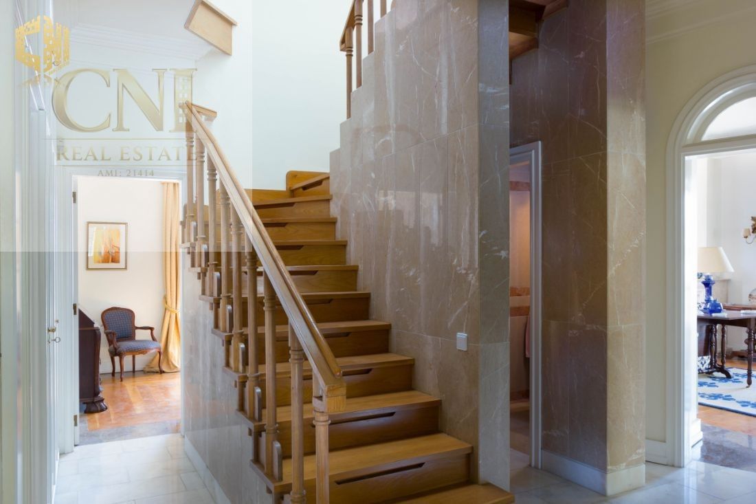 Com duas lareiras, uma em cada piso, este T4 duplex tem tectos altos e divide-se por dois andares (ao nível do 1º e 2º andares, não dispondo de elevador) da seguinte forma: