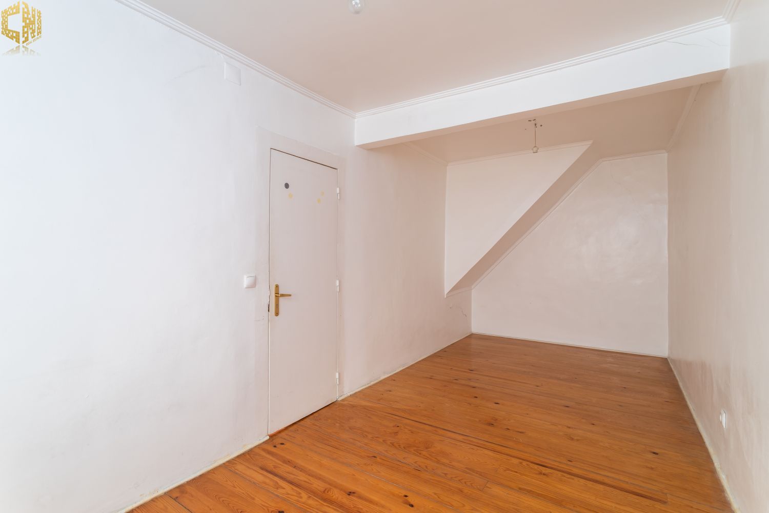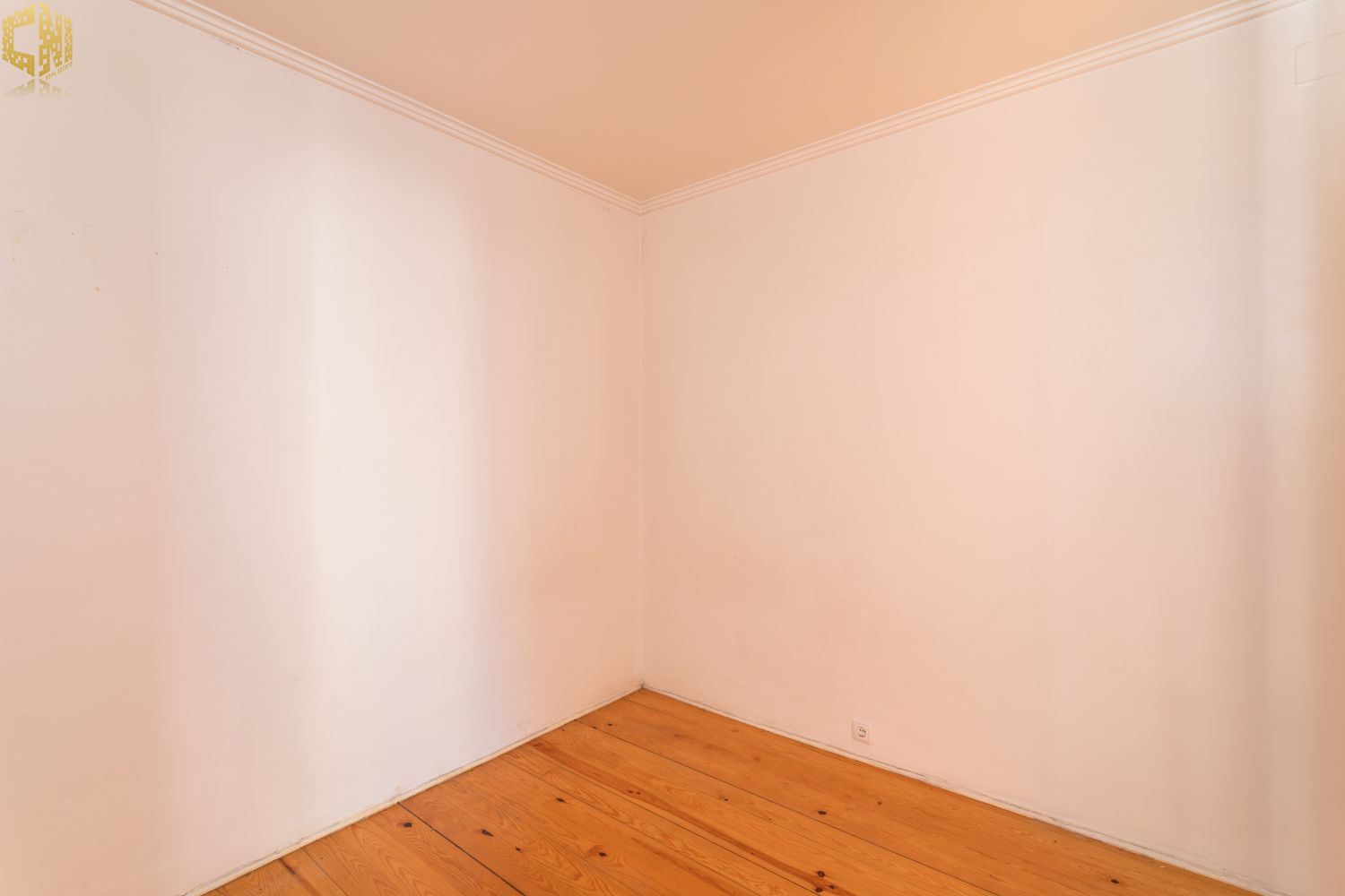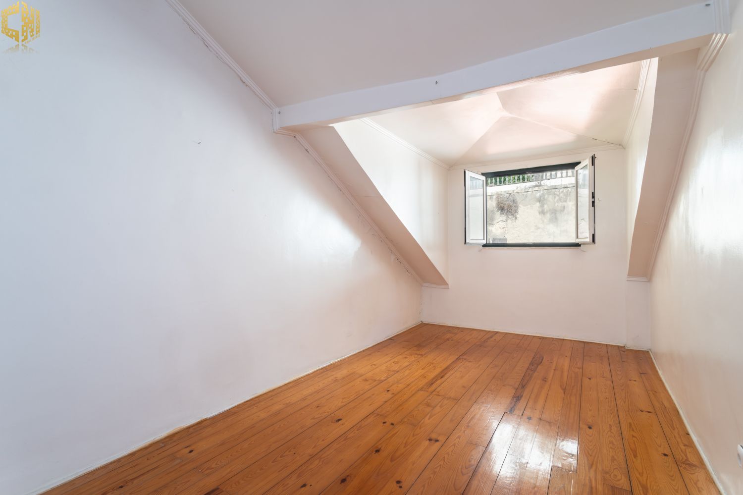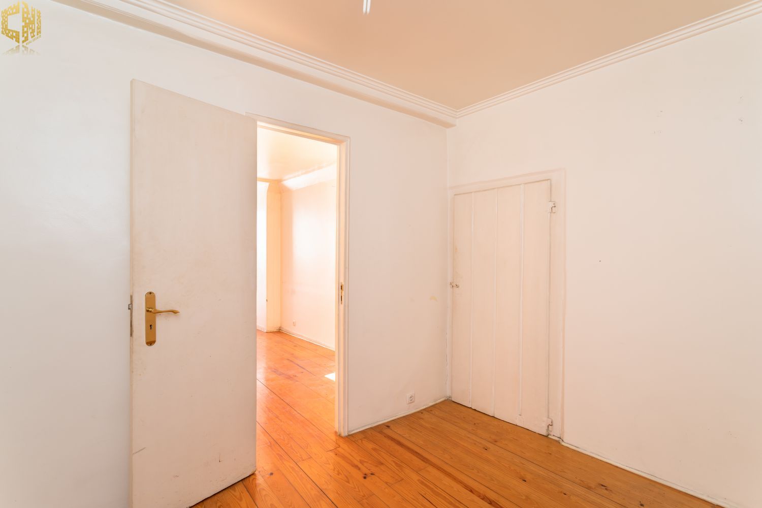 No piso térreo  sala com chão de madeira, dois quartos – um dos quais interior – cozinha, e casa de banho com janela.