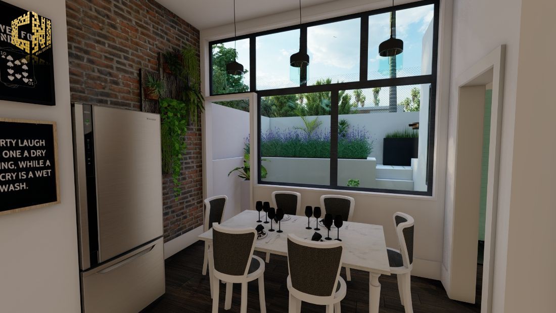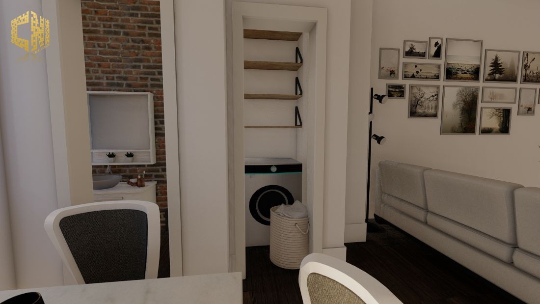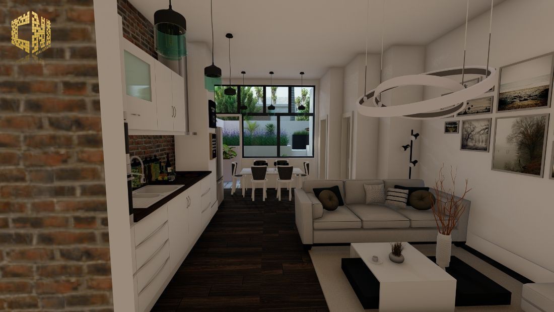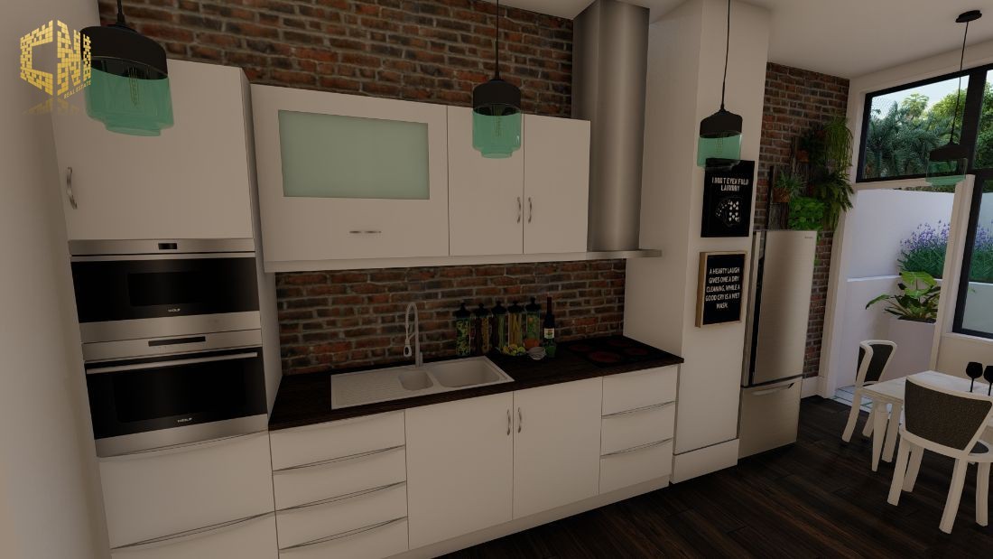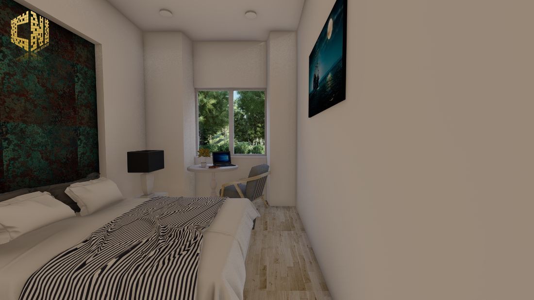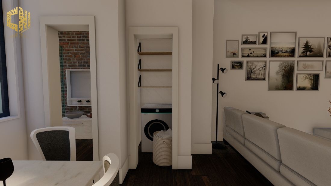 Cozinha + Sala c/ 30m2 com móveis em Branco e Cinza; Tampo em silestone Preto; Forno, Placa, Exaustor, Micro-ondas, Máquina de lavar louça encastrada, Máquina de lavar roupa, Esquentador e Combinado encastrado ; Despensa c/ 2m2; Wc Social c/ 3m2; 1 Quarto c/ 23m2, Closet e Wc; Hall c/ 5m2; Alpendre c/ 6m2;