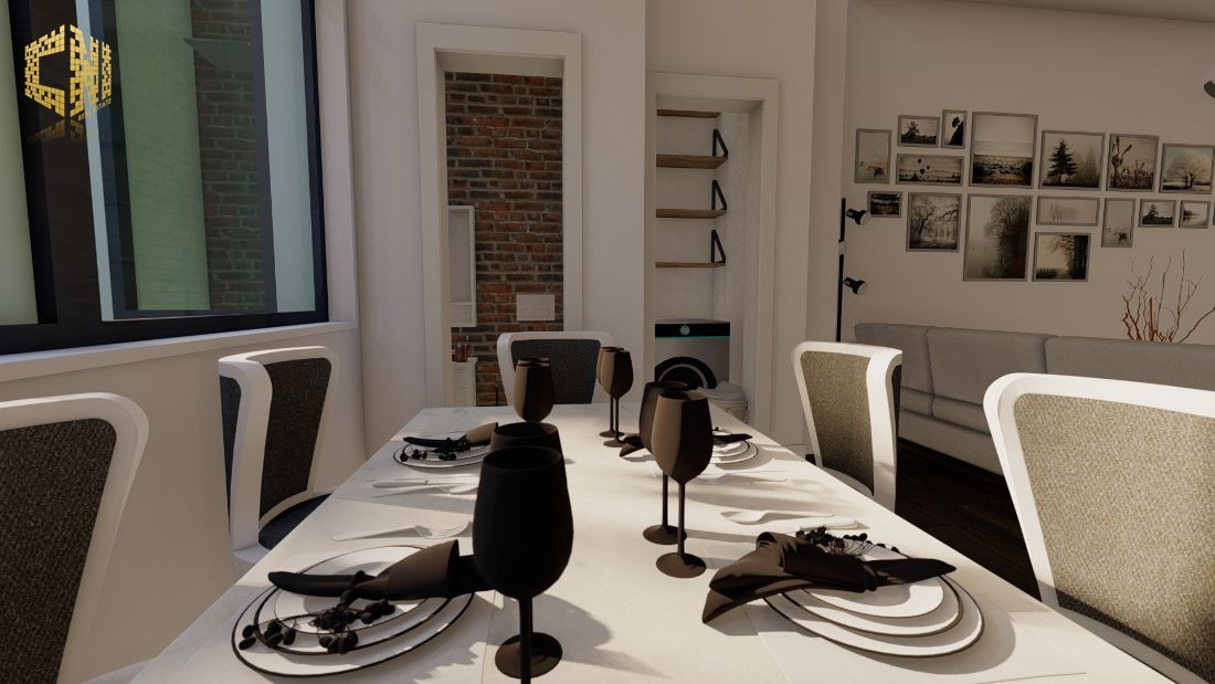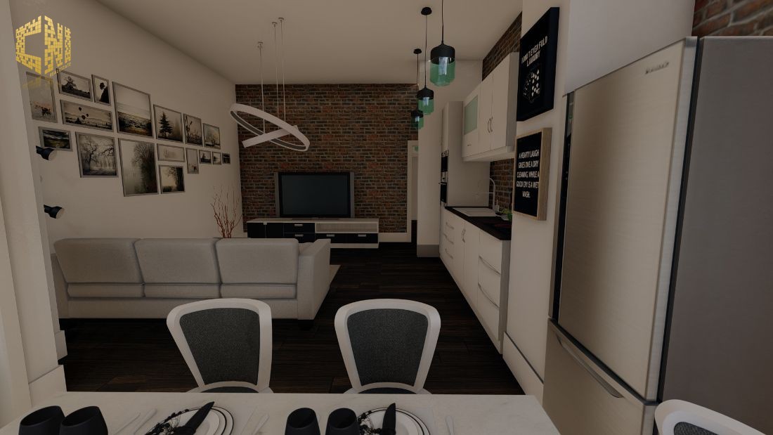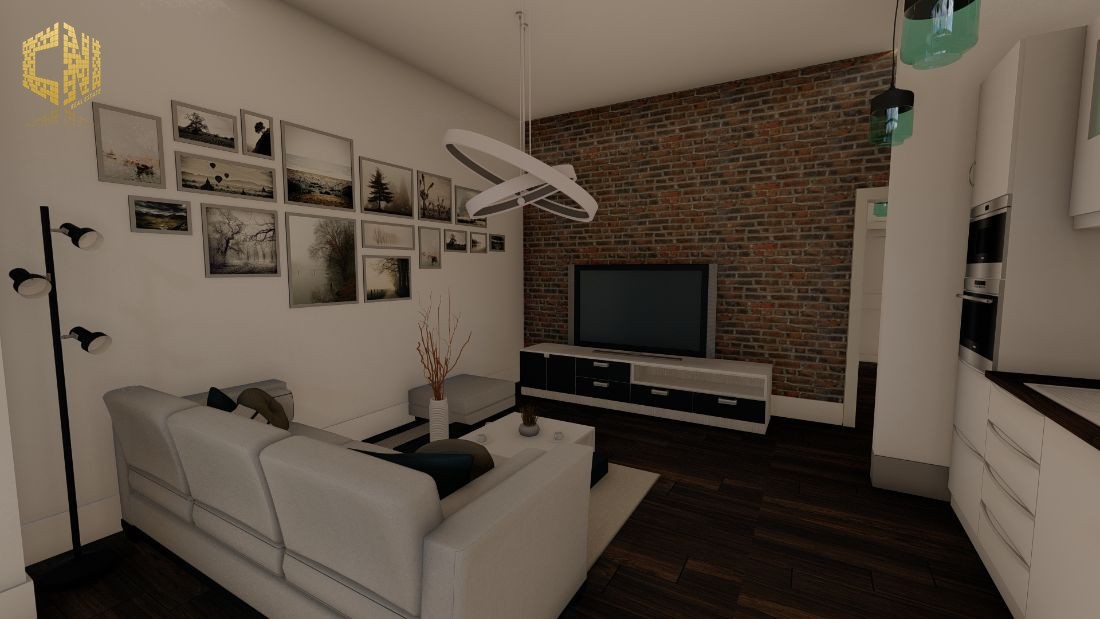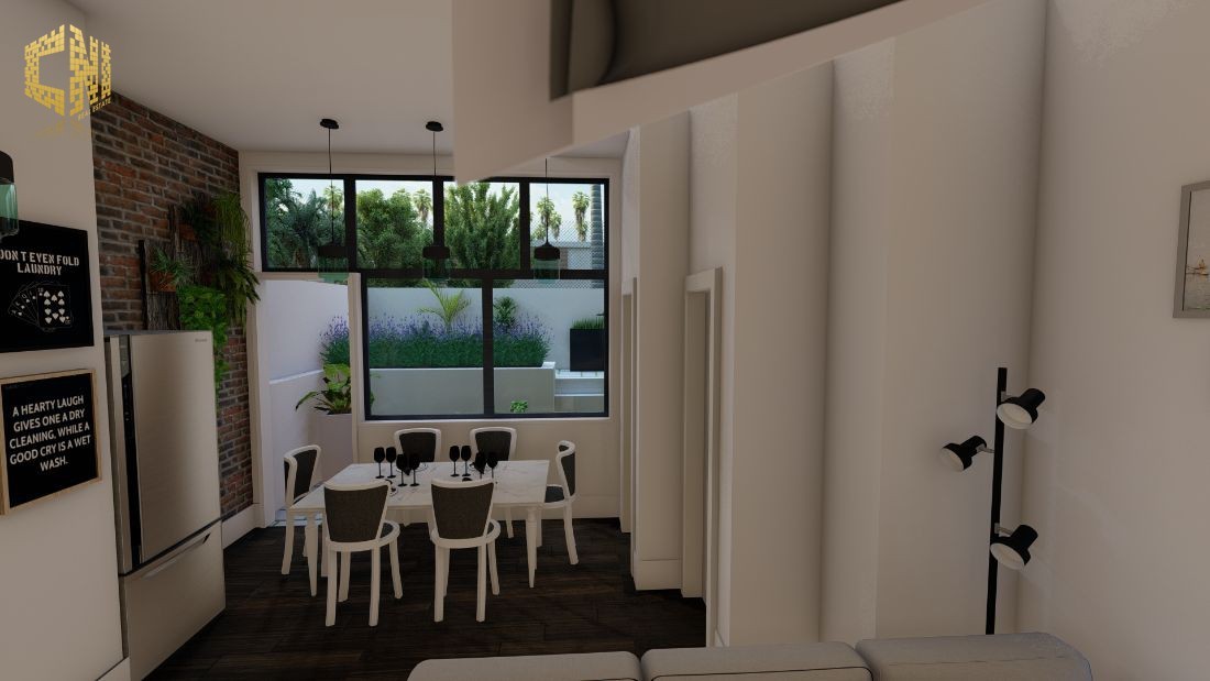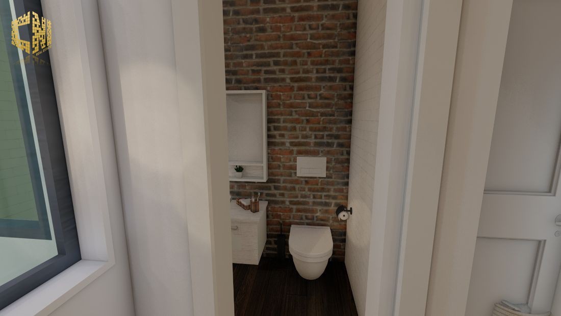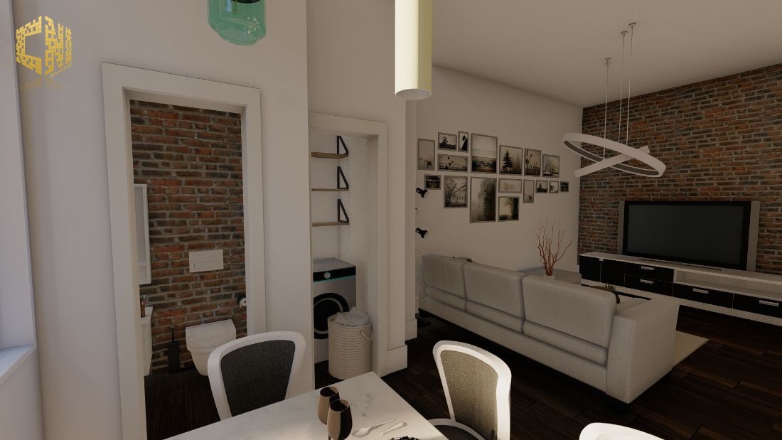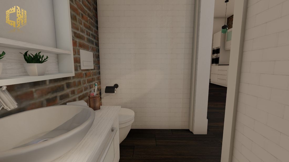 Cozinha + Sala c/ 30m2 com móveis em Branco e Cinza; Tampo em silestone Preto; Forno, Placa, Exaustor, Micro-ondas, Máquina de lavar louça encastrada, Máquina de lavar roupa, Esquentador e Combinado encastrado ; Despensa c/ 2m2; Wc Social c/ 3m2; 1 Quarto c/ 23m2, Closet e Wc; Hall c/ 5m2; Alpendre c/ 6m2;