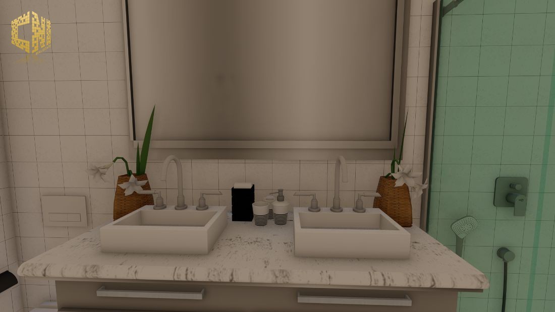 Teto falso com luzes embutidas leds, nos WCs e Cozinha.