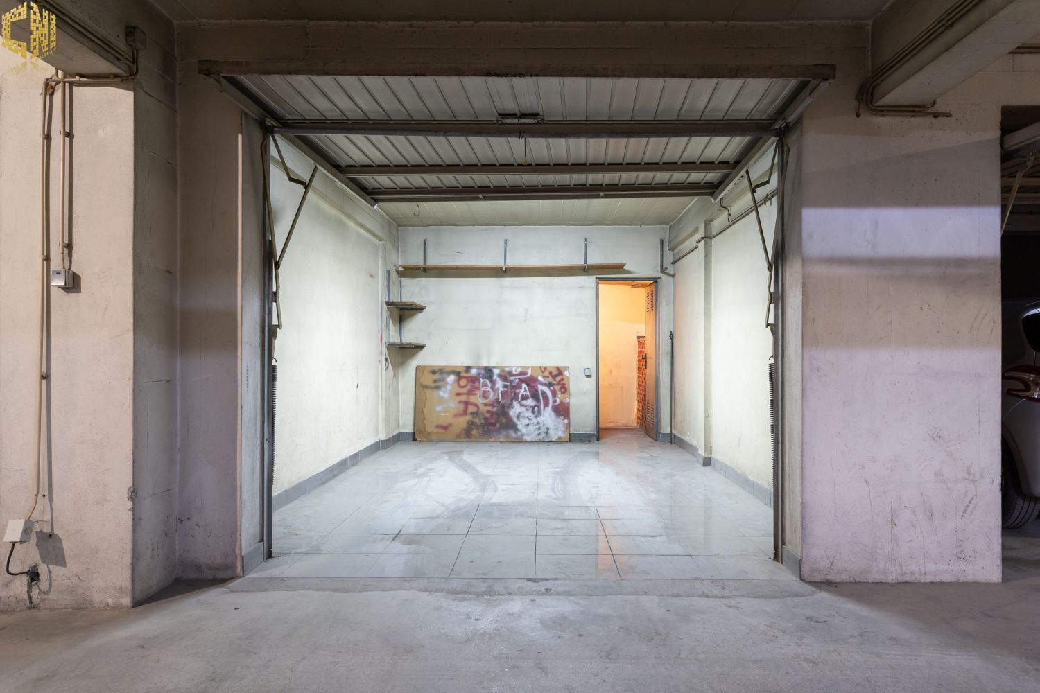 Na cave existe uma arrecadação e box para um automóvel.