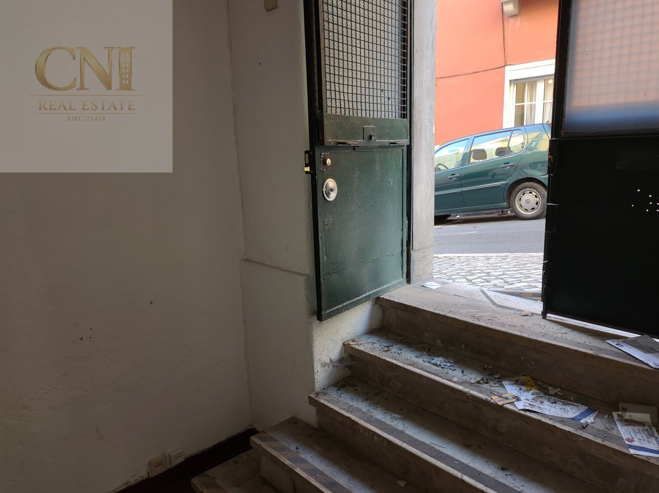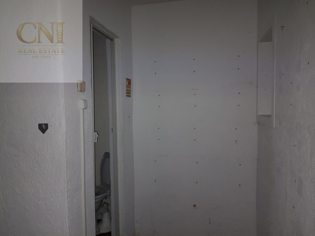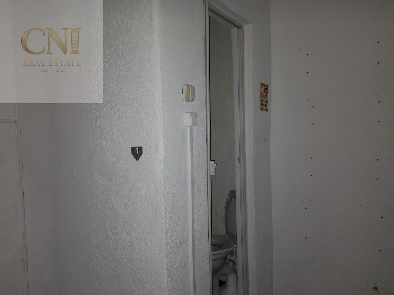 Espaço comercial de 30m2, com a porta virada para a zona de passagem, dividido em duas salas e uma casa de banho.
